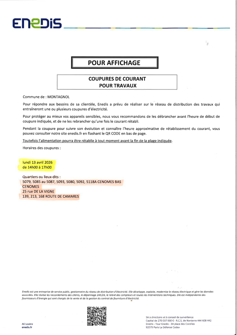 Coupures d’électricité le 13 avril 2026
